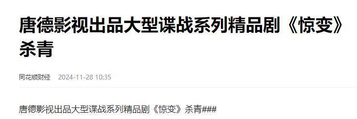 同花顺财经2024—11—28唐德影视出品大型谍战系列佳构剧《惊变》已毕
